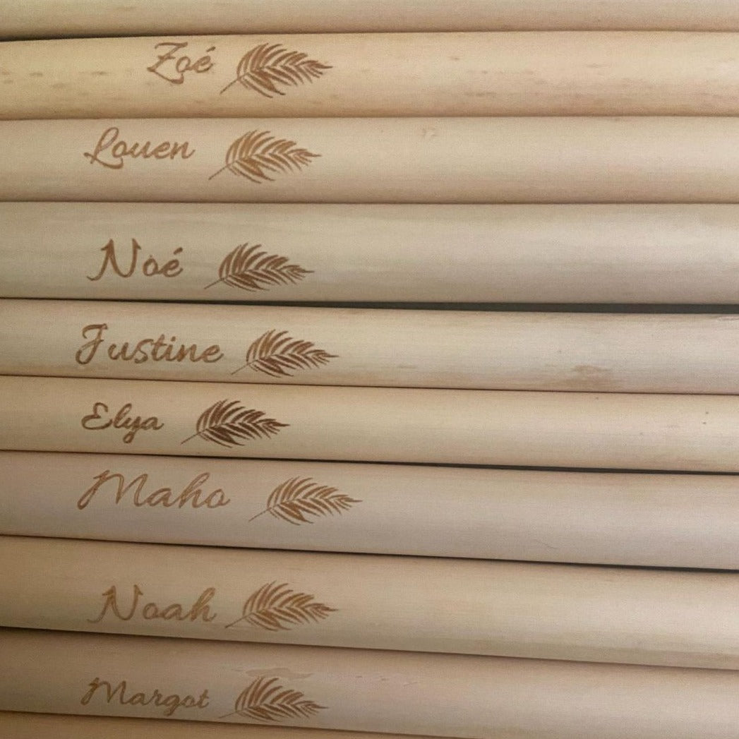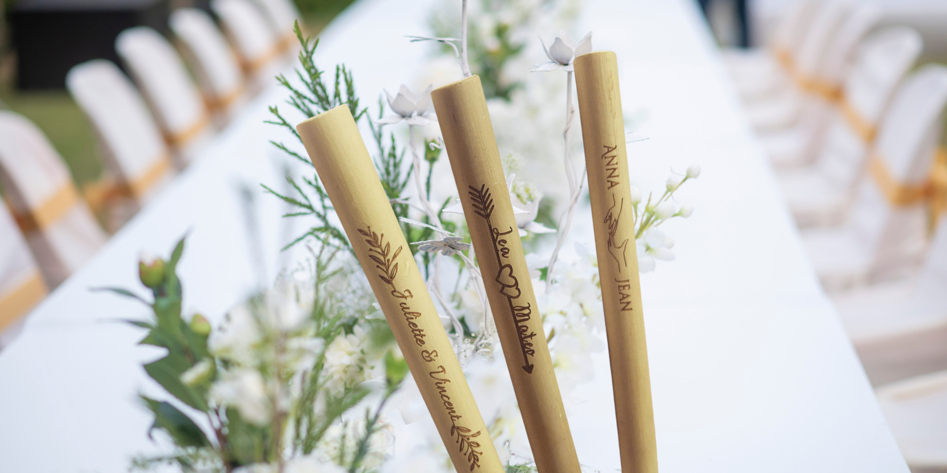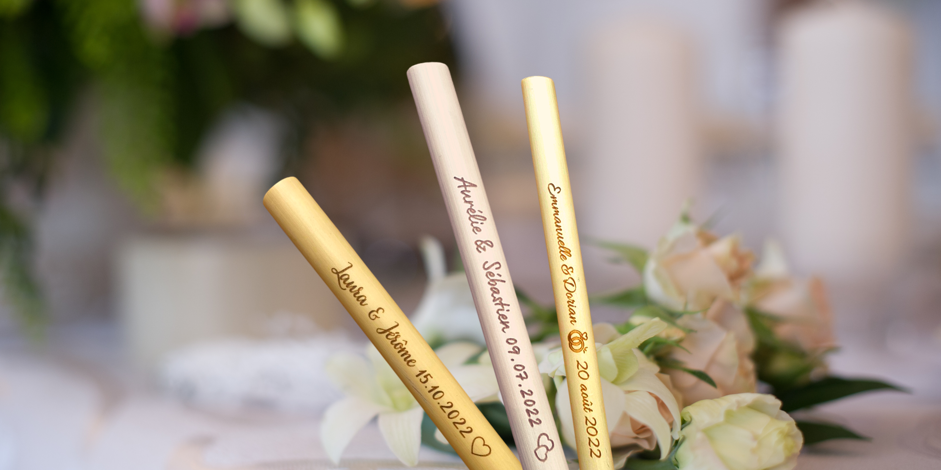 Un marque place original, et reutilisable, gravure et personnalisation des paille en bamboçu pour votre évenement